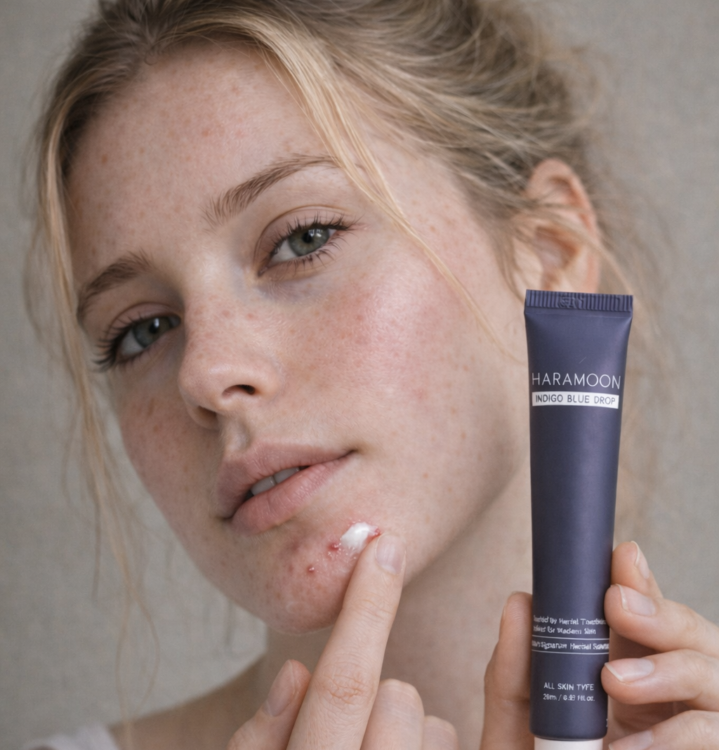 Cooling and fast-acting, Harmon Indigo Blue Drops is an acne spot calming cream clinically proven to improve acne and soothe heated, inflamed, acne-prone skin. This targeted treatment reduces redness and irritation without drying, using herbal anti-inflammatory ingredients to relieve heat stress and restore balance.